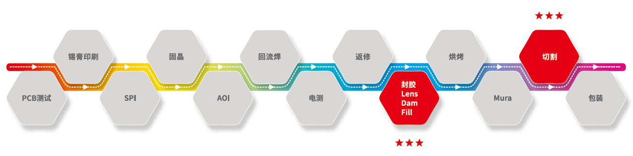 Lens / Dam / Fill 點膠方案彎折自動線方案彎折區 / 邦定區涂膠自動線
