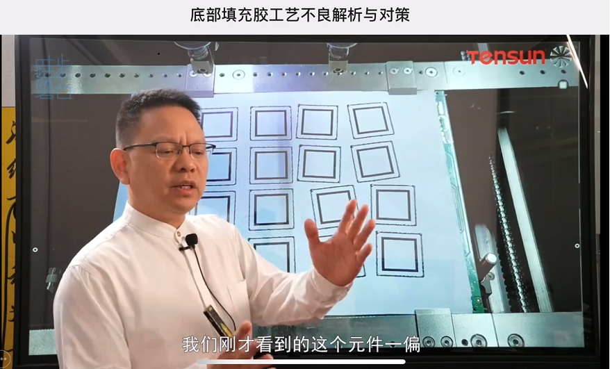 近日,中國PCBA最具影響力的實(shí)戰(zhàn)專家之一薛廣輝老師主講的《底部填充膠工藝不良解析與對(duì)策》課程在網(wǎng)絡(luò)平臺(tái)傳播分享,引起了專業(yè)人士及相關(guān)從業(yè)者的廣泛關(guān)注。薛老師在分享底部填充的技術(shù)要點(diǎn)時(shí),還引入實(shí)戰(zhàn)應(yīng)用案例,其中就重點(diǎn)推薦了Tensun騰盛的底部填充自動(dòng)傾斜噴射點(diǎn)膠方案。
