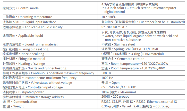 6、撞針行程、開(kāi)關(guān)閥時(shí)間,撞針力度等均可調(diào)節(jié),適用多種膠水和點(diǎn)膠工藝;